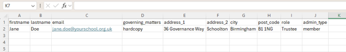 IMPORTANT! For the following columns you MUST choose between a specific list of entries or the upload will fail. Ensure there are no spaces or misspellings, as in the reference below: