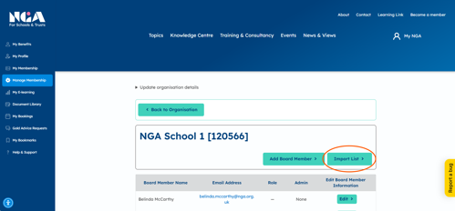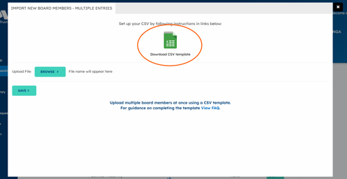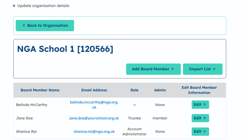 7. You will see confirmation at the top of the page of the number of board members added. Close the pop up box and your new board members will now be visible (you may need to refresh the page)