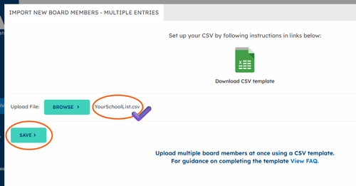6. Once your file is prepared and saved to your computer, upload the file by clicking Browse and then press Save.
