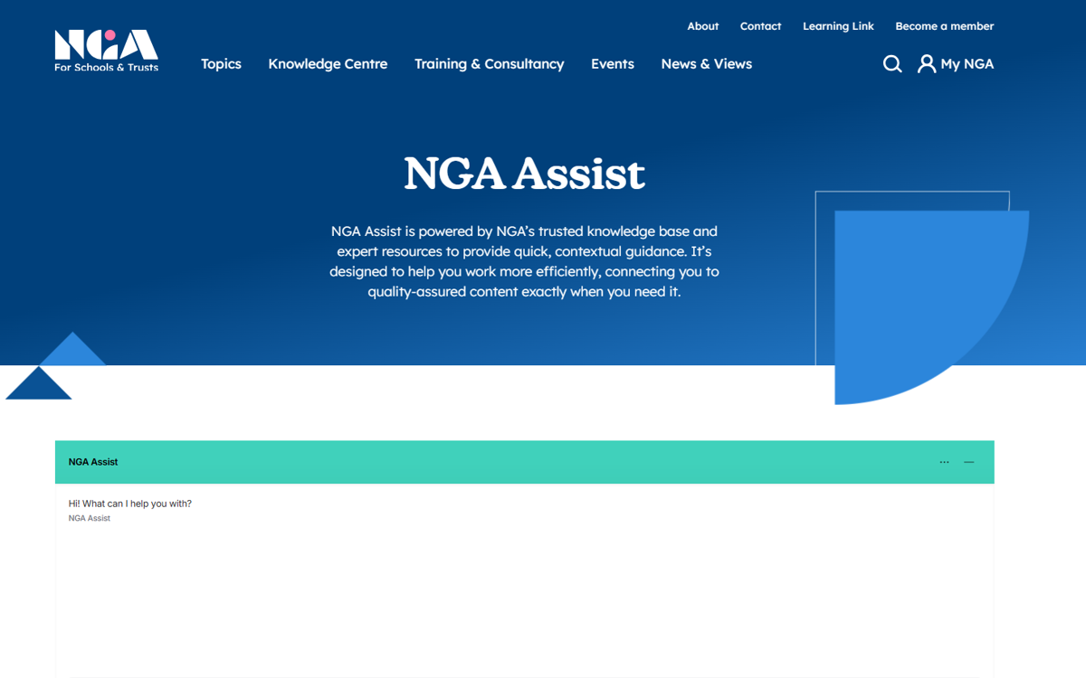 NGA recently launched NGA Assist, a new AI-powered chatbot designed specifically for the governance community. The tool is available now for NGA Gold Governing Board and NGA MAT members at no extra cost.
