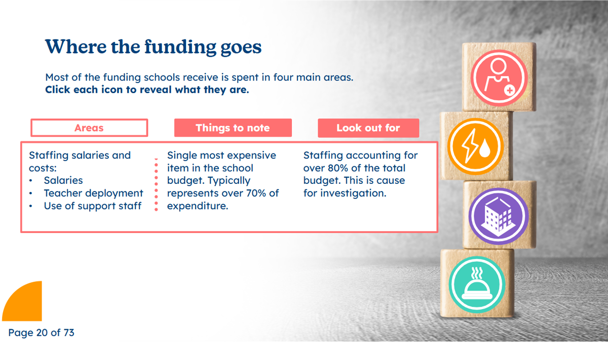 Governors and trustees provide insights into meeting the challenge of how to make tight resources go as far as possible. You will gain a clear idea of pupil and other premiums and what your governing board can do to ensure spending has the impact on pupil outcomes that it should. Various tools and approaches for developing financial efficiency in your organisation will be highlighted.