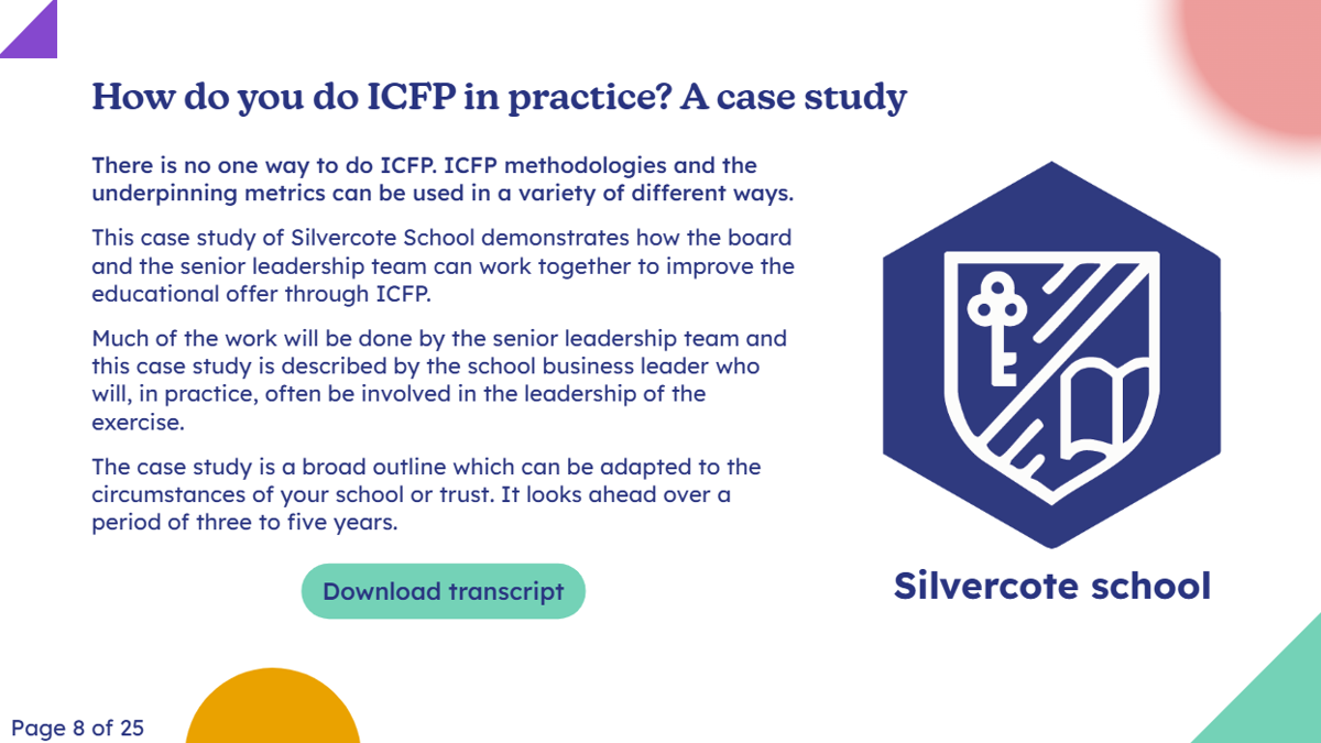 Governing boards need to ensure that pupils can make the most of their time at school by optimising resources to deliver strong outcomes through a suitable curriculum. Done well this can support the achievement of an ambitious vision and better life chances for all pupils. Done poorly it can result in unrealistic expectations, a failed vision and insolvency. A key optimisation tool is integrated curriculum and financial planning (ICFP) and there is increased emphasis on its use by DfE.